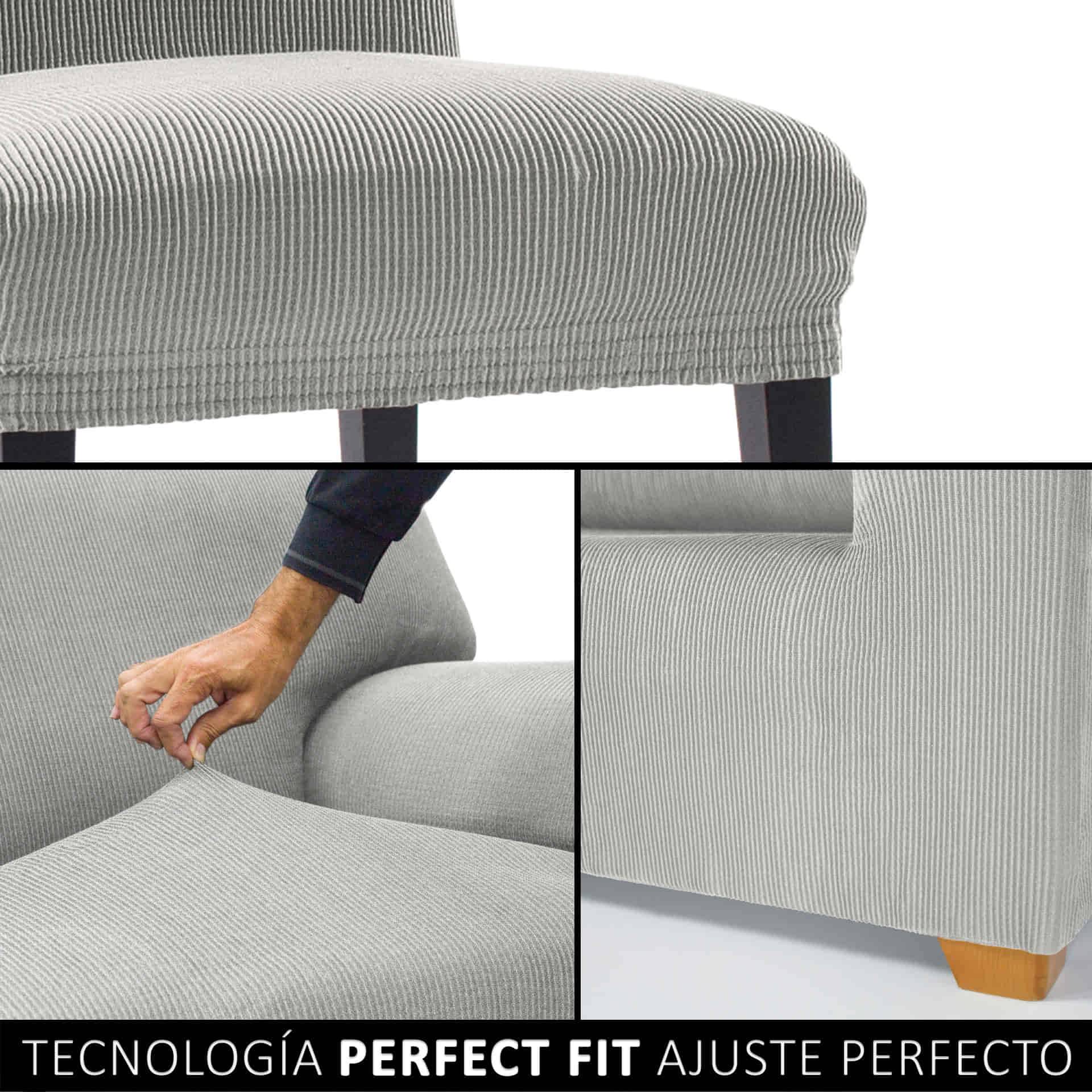 Funda de sofá chaise longue de una sola pieza. Podrás redecorar tú sofá en menos de un minuto por su gran facilidad de colocación. Nuestros tejidos te ofrecen la máxima adaptabilidad y protección que tu sofá necesita.