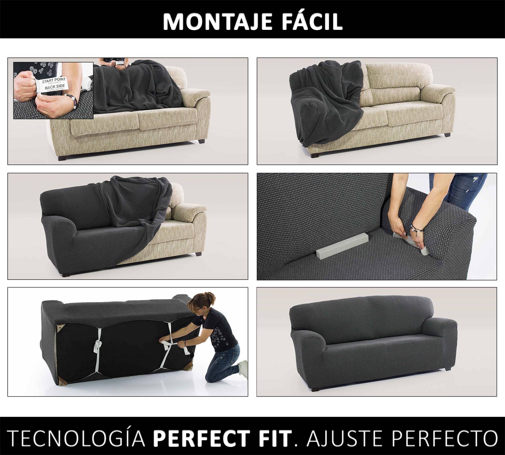 Colocación muy rápida y fácil gracias a la elasticidad del tejido. Sistema de colocación patentado que no necesita levantar los cojines del asiento. Válida para prácticamente todos los modelos y formas de sofá del mercado. Precio más bajo garantizado. Precios de fábrica sin competencia. Somos fabricantes. Producto 100% español.