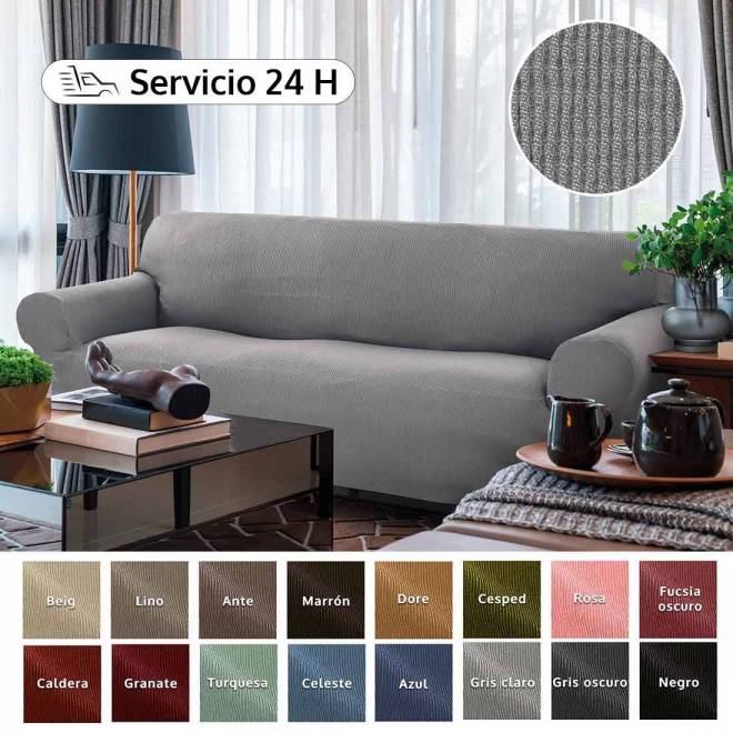 Funda elástica para sofá confeccionada con tejido Súper elástico. Extensible en todas direcciones. Máxima adaptabilidad. Colocación muy rápida y fácil gracias a la elasticidad del tejido. Válida para prácticamente todos los modelos y formas de sofá del mercado. Precio más bajo garantizado. Precios de fábrica sin competencia.